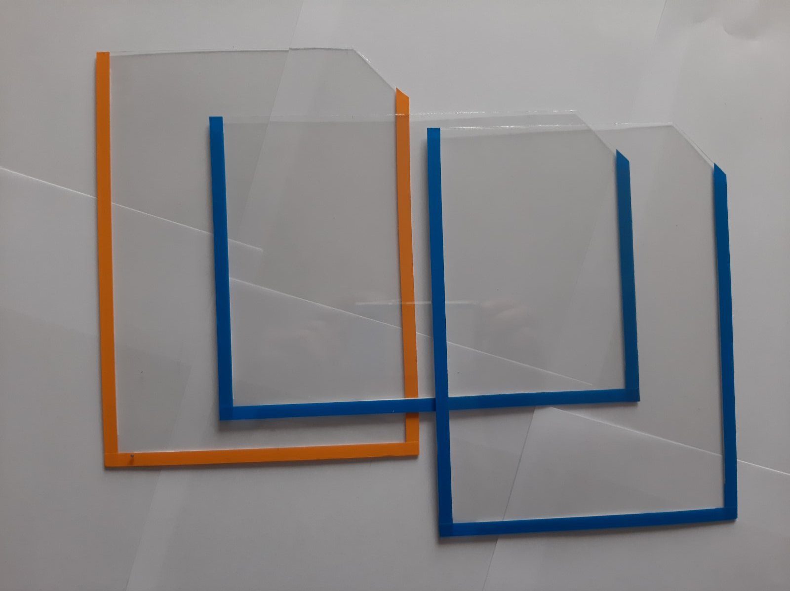 Кольорові “Кишені» для змінної інформації, ПВХ 0,4 мм з двостороннім скотчем