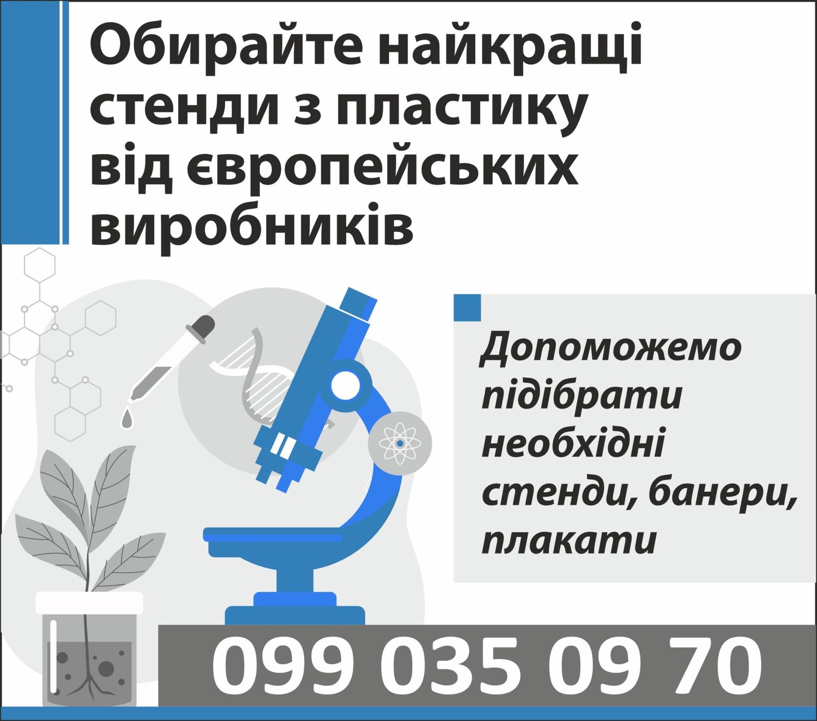 Наша компанія займається розробкою та виробництвом пластикових стендів, плакатів, банерів і табличок, які повністю відповідають вашим запитам та побажанням. Ми створюємо якісну продукцію для різних сфер діяльності.