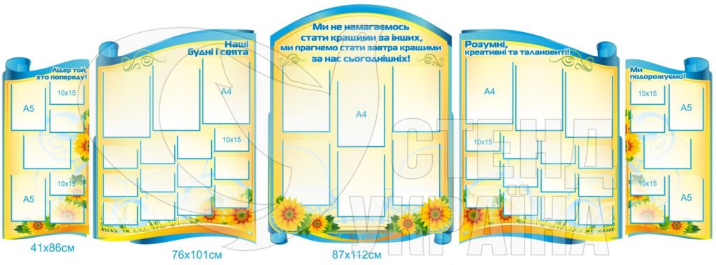 Замовити – Комплект стендів для оформлення коридору учбового закладу – osvitjanyk.dp.ua
