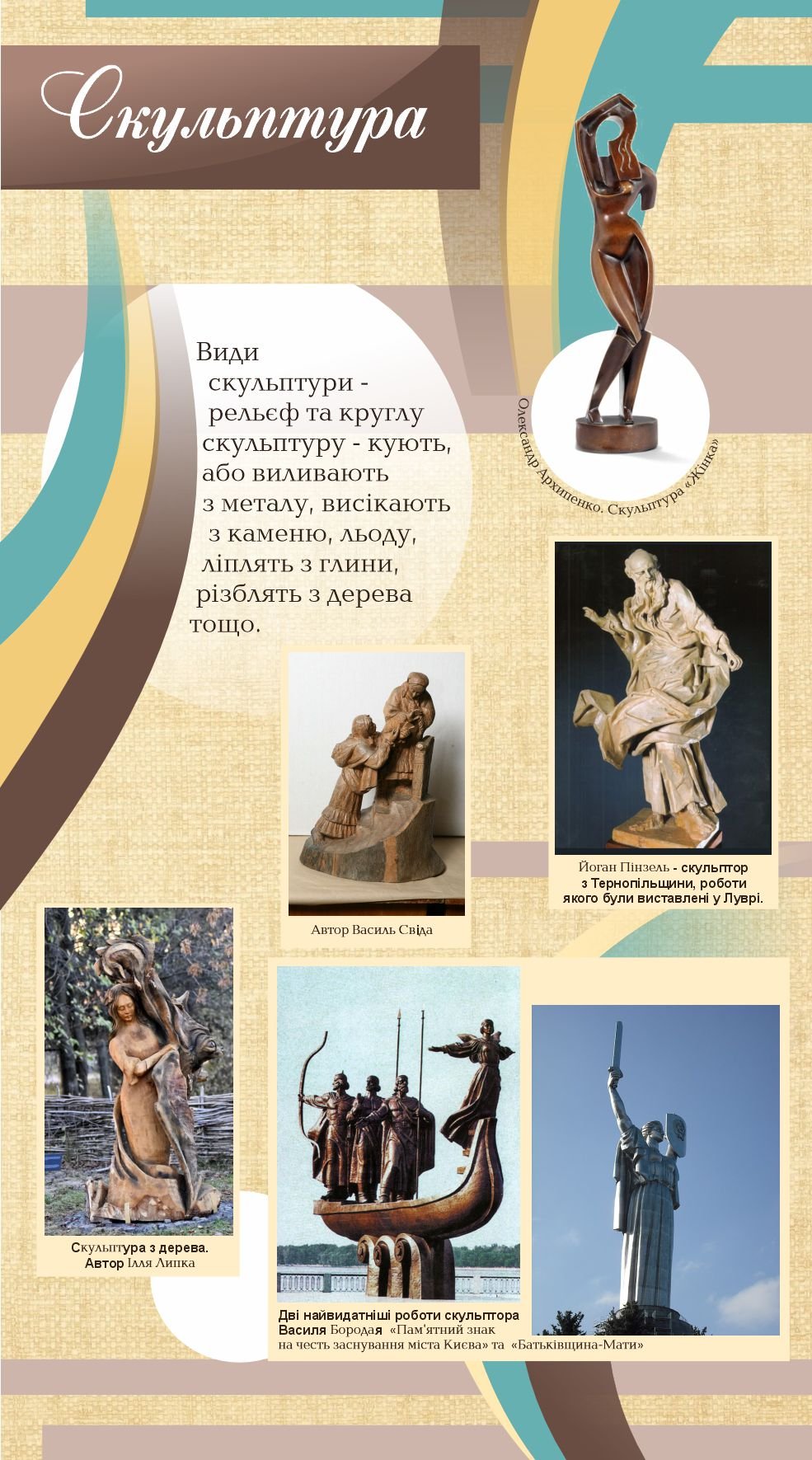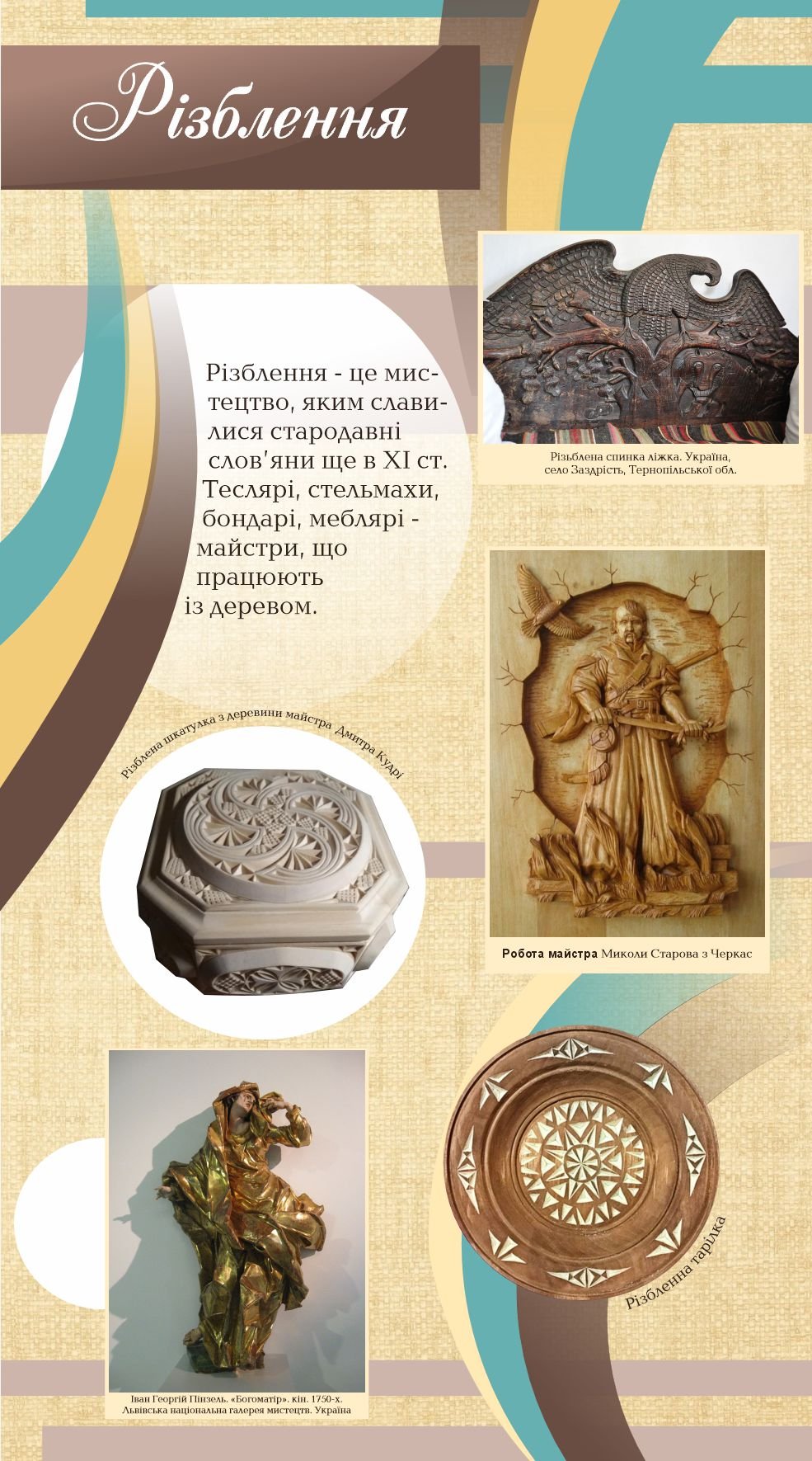 Комплект стендів з мистецтва “Графіка, мистецтво, витинанка, живопис, скульптури, ткацтво, кераміка, лялька, плетіння, різблення, писанкарство”
