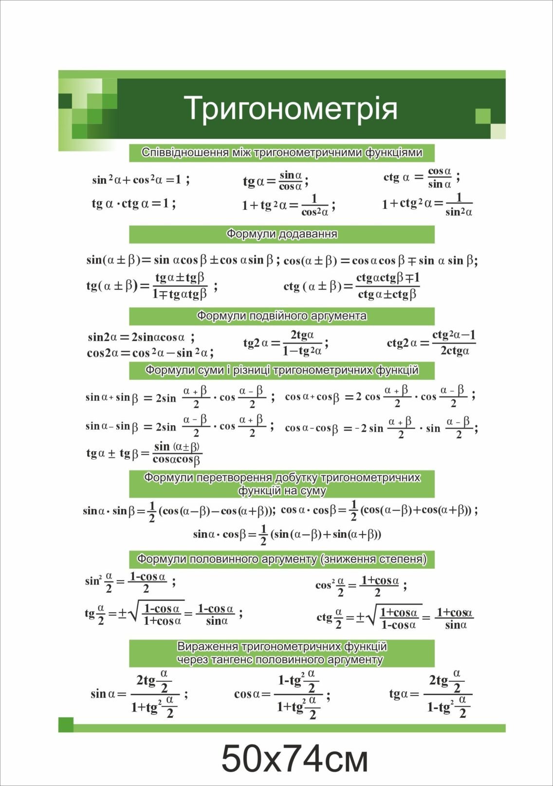 Замовити – Пластиковий стенд “Тригонометрія” – osvitjanyk.dp.ua