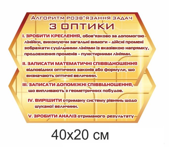 Замовити – Стенд “Алгоритм розв’язання задач з оптики” – osvitjanyk.dp.ua