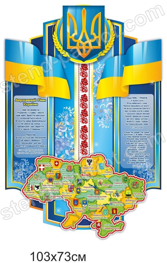Замовити – Стенд державна символіка України з картою – osvitjanyk.dp.ua