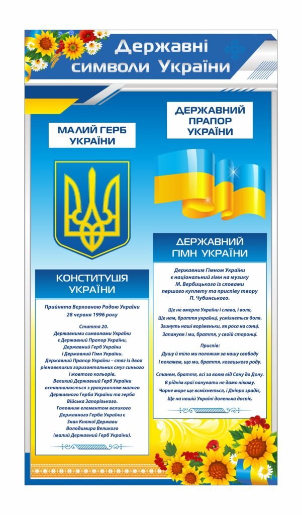 Замовити – Стенд “Державні символи” з випискою з конституції – osvitjanyk.dp.ua