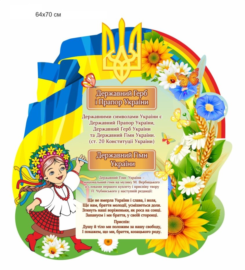 Замовити – Стенд “Державний герб , прапор та гімн України” – osvitjanyk.dp.ua