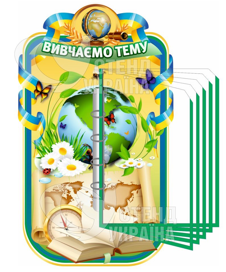 Замовити – Стенд для кабінету географії з клік-системою на 5 кишень «Вивчаємо тему» – osvitjanyk.dp.ua