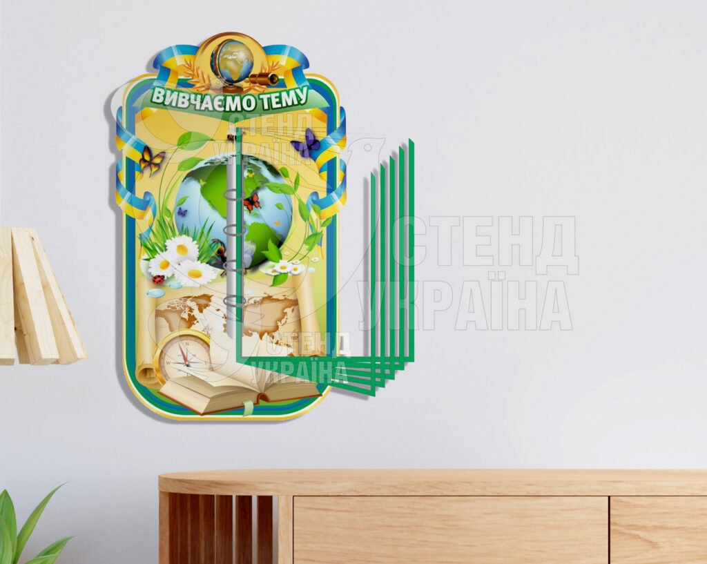 Стенд для кабінету географії з клік-системою на 5 кишень «Вивчаємо тему»