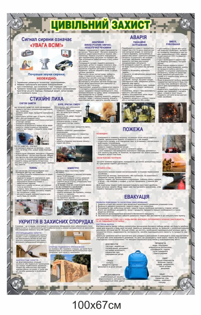 Усі представленні стенди виготовлені з високоякісного ПВХ (пластику) товщиною 3мм, який вкривається плівкою з повнокольоровим друком. «Кармани» з прозорого пластику ПВХ товщиною 0.4мм.