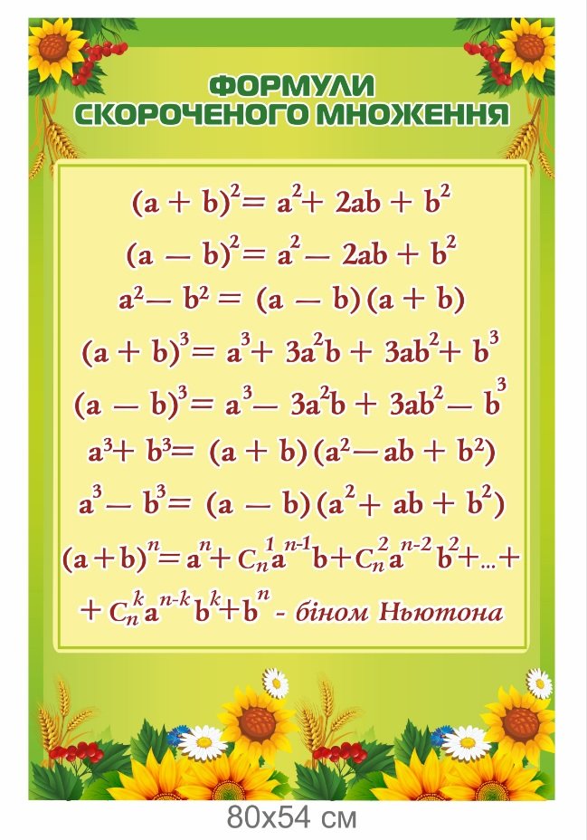 Замовити – Стенд “Формули скороченого множення” osvitjanyk.dp.ua