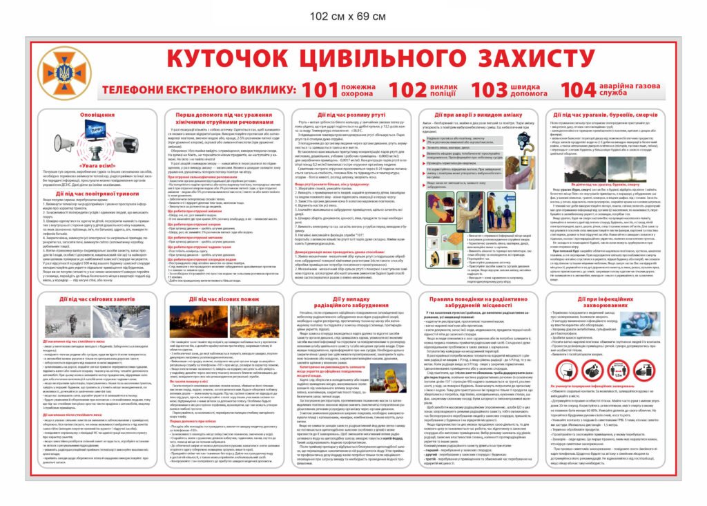 Замовити – Стенд “Куточок цивільного захисту” білий – osvitjanyk.dp.ua