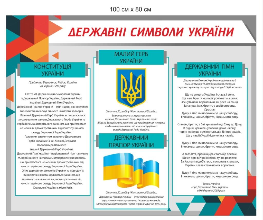 Замовити стенд “Символіка нашої Батьківщини” можна на нашому сайті – osvitjanyk.dp.ua