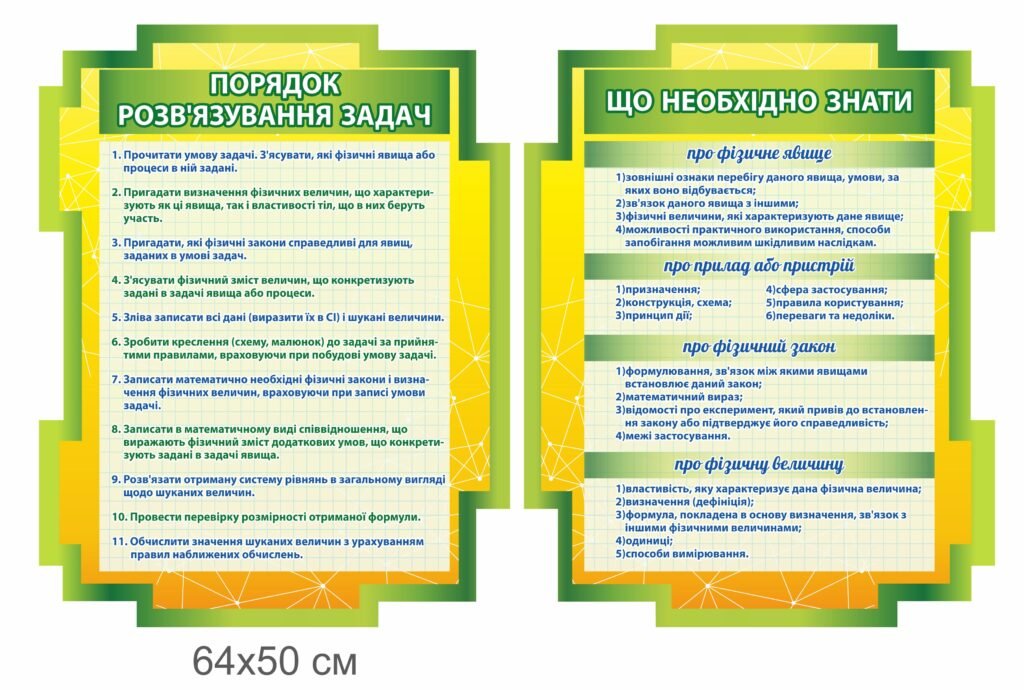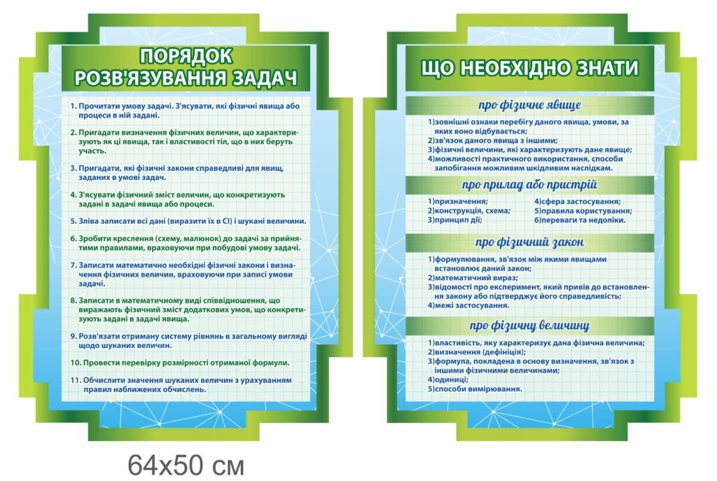 Купити стенд у кабінет фізики «Порядок розв’язування задач і що необхідно знати» Ви можете натиснувши кнопку «Купити», або зателефонувавши по номерам вказаним у верхній частині сайту.