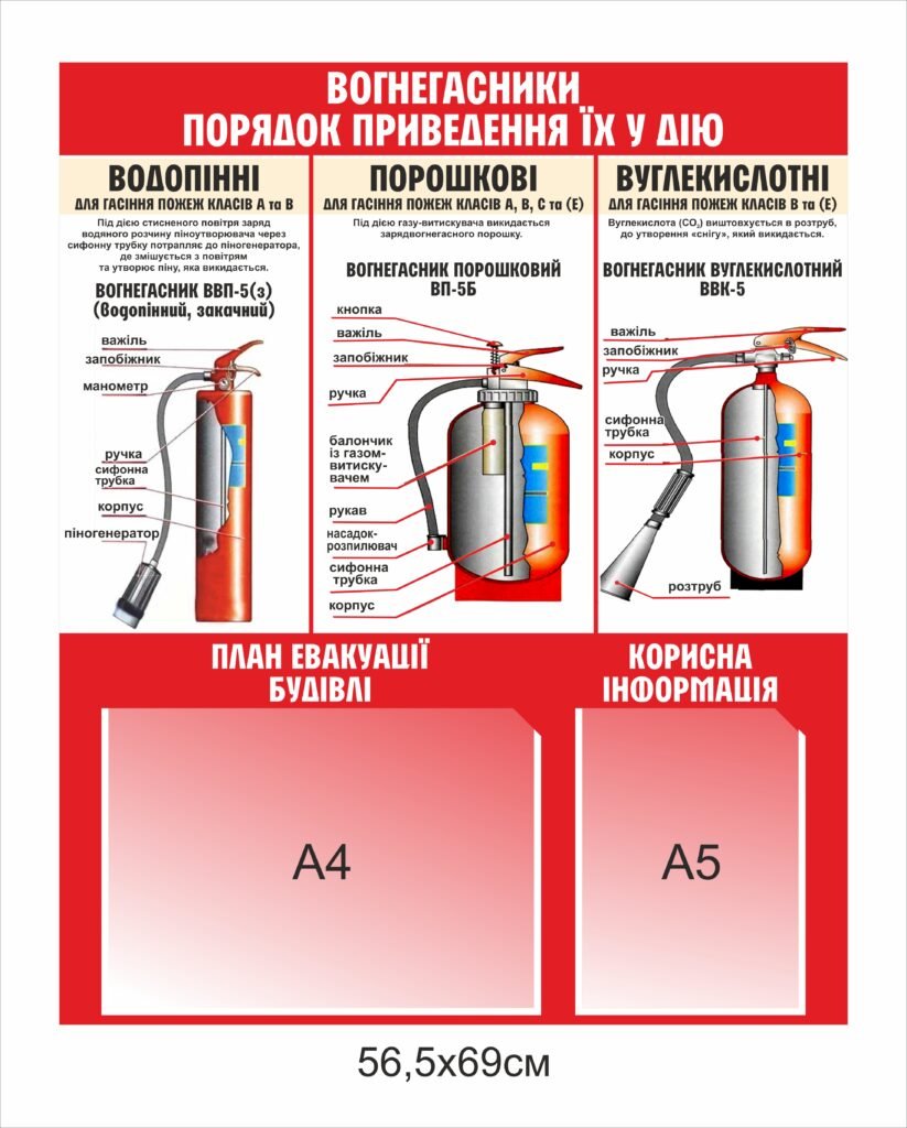 Замовити – Стенд “Вогнегасники та порядок приведення їх у дію” – Порядок дій при пожежі та вогнегасник – osvitjanyk.dp.ua