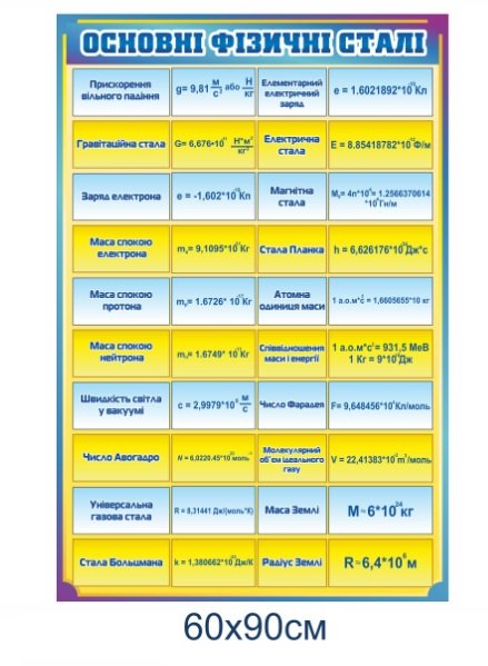 Замовити – Стенд з фізики “Основні фізичні сталі” – osvitjanyk.dp.ua