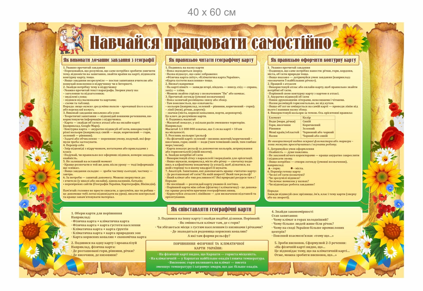 Замовити – Стенд з географії “Навчайся працювати самостійно” – osvitjanyk.dp.ua