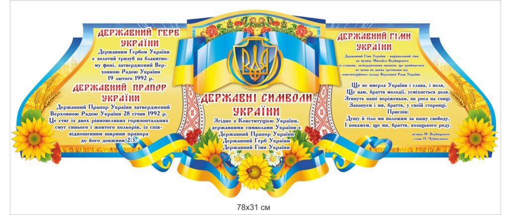 Замовити – Стенд з тризубом та прапором України можна на нашому сайті – osvitjanyk.dp.ua