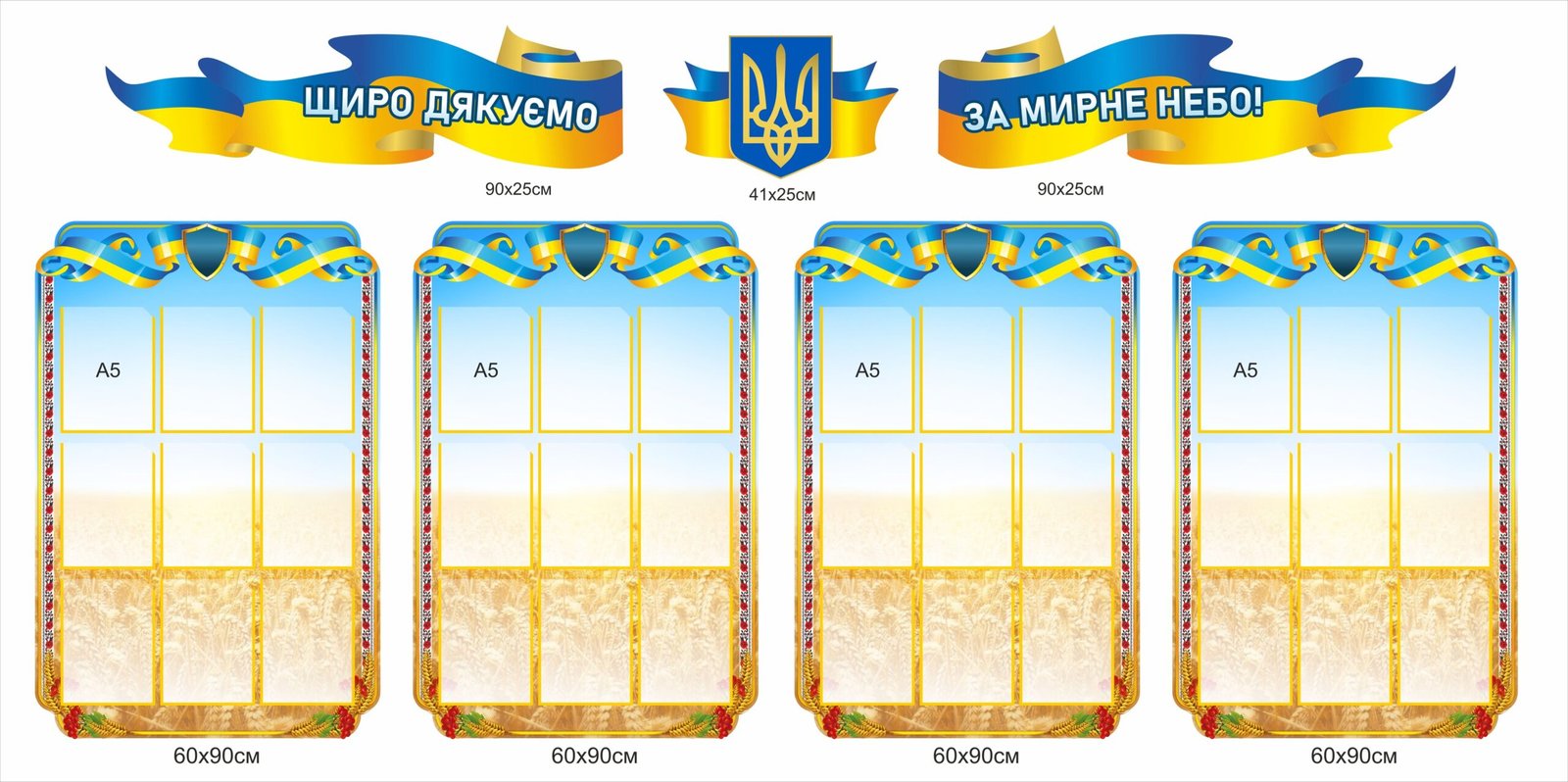 • 4 стенди інформаційні з кишенями А5 — 60×90 см кожен