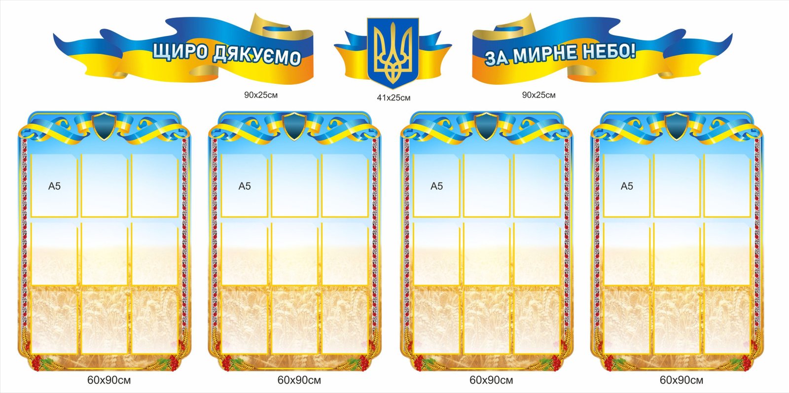 • 4 стенди інформаційні з кишенями А5 — 60×90 см кожен